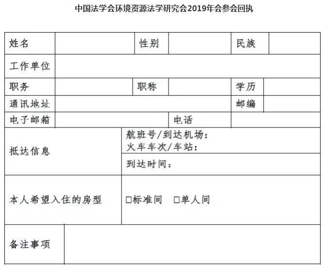 (3)参会者以第一作者限投一篇论文,论文须围绕会议主题和分论题撰写。会议论文请做成WORD文档,并于2019年8月30日之前发送到会务组工作邮箱ceclhainu@163.com,请在邮件主题栏标明“2019年年会论文+单位+作者”。参会论文将择优在研究会会刊《中国环境法学评论》上发表,并在“中国期刊网”刊载;不同意刊载的,请予以说明。