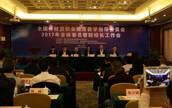 2017年11月22日,全国外经贸职业教育教学指导委员会2017年全体委员暨院校长工作会议在海口举行。会议总结回顾2017年全国外经贸行指委相关工作,并对外经贸职业教育体制机制改革发展进行了交流研讨。