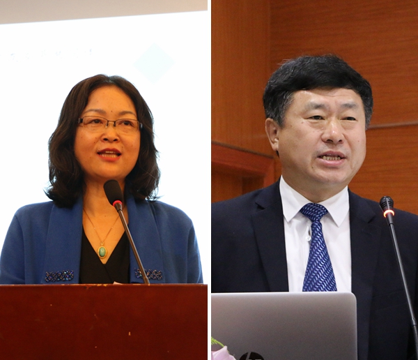 浙江金融职业学院院长郑亚莉、山东外贸职业学院院长刁建东作经验交流