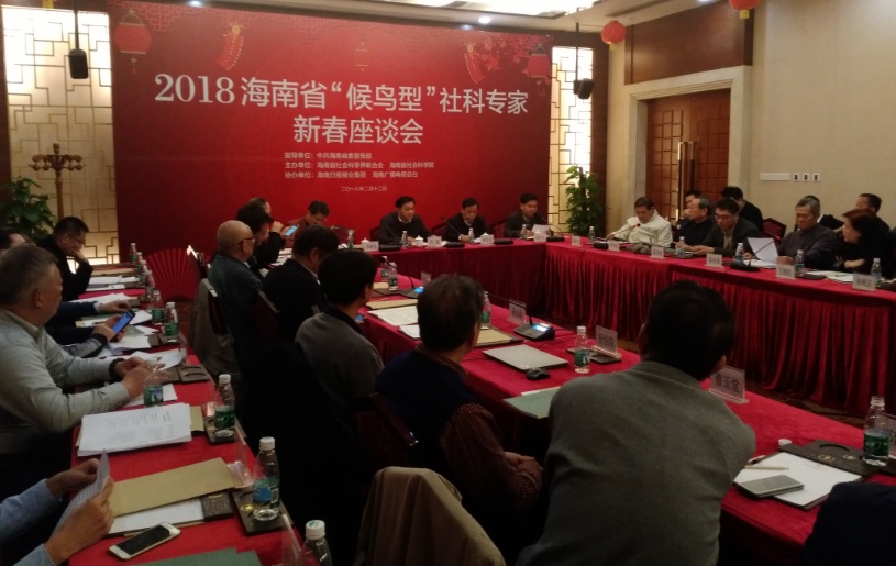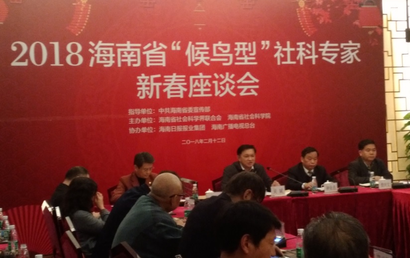 为贯彻落实海南省委、省政府《关于充分发挥“候鸟型”人才作用的意见》(琼办发[2107]1号)文件精神,做好联系、联谊和服务好“候鸟型”社科人才,在海南省委宣传部的指导下,2月12日下午,由海南省社科联、海南省社科院联合主办的2018年海南省“候鸟型”社科专家新春座谈会在海口举行。座谈会邀请了近30名来自省外有关高校、党校和科研机构的社科专家学者,围绕“改革开放建设美好新海南”话题,从生态、旅游、经济、文化等领域为海南发展建言献策。
