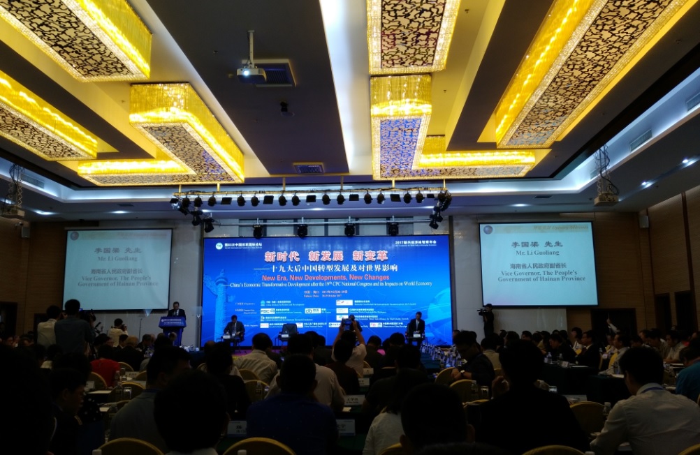 海南省副省长李国梁会见了国内外专家学者,并在开幕式致辞,代表海南省人民政府,对本次论坛表示热烈祝贺。他指出,十九大所阐释的新时代、新思想、新目标、新征程成为推进中国特色社会主义事业的行动指南。站在全新的历史起点,海南全省贯彻十九大重要精神,推进海南改革开放进程,建设经济繁荣、社会文明、生态宜居、人民幸福的美好新海南,争创中国特色社会主义实践范例。一是以“多规合一”改革为重点打造更具活力的体制机制,为经济持续健康发展提供新动能。二是坚持生态立省不动摇,实现绿色发展、科学发展的新突破。三是坚持扩大服务业市场开放,提升海南国际化水平。
