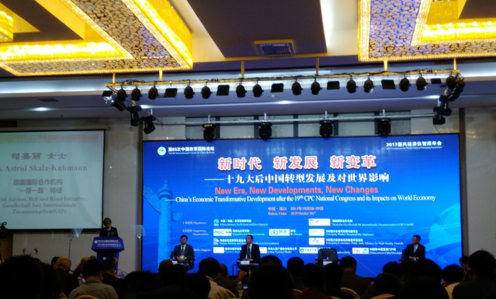 2017年10月28-29日,由中国(海南)改革发展研究院和德国国际合作机构合作举办的第83次中国改革国际论坛暨2017新兴经济体智库年会在海口市举行,这是备受全球瞩目的中国共产党第十九次代表大会胜利闭幕后,我国学界与国际学界共同召开的一次重要国际性学术会议。来自国家相关部委、国内高校、研究机构,28个地方省、市、自治区改革政策研究机构,12个国家和国际组织的专家学者共400多人参加本次论坛。