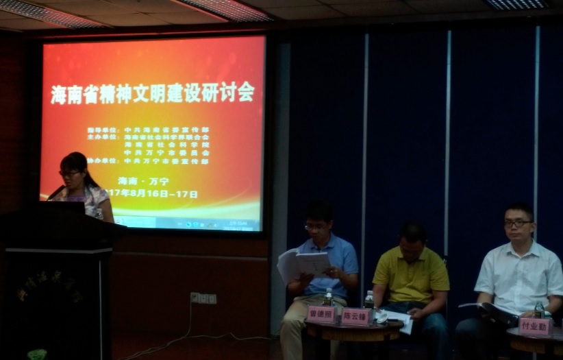 我院教师隋桂杰主持的由海南省社科联组织的社科类社会组织2017年度专题调研项目《保护好海口三亚骑楼老街,延续城市历史文脉》,通过省社科联验收,并于2017年8月17日在万宁市召开的“海南省精神文明建设研讨会”上进行了大会交流发言。