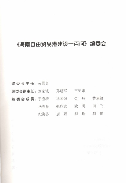 黄景贵院长主编新书《海南自由贸易港建设一百问》正式发行