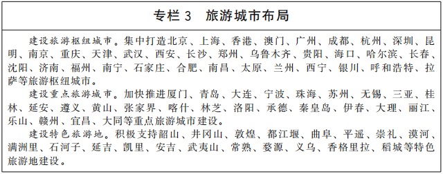 的大旅游发展格局。国家建立旅游工作协调机制,加强对全国旅游业发展的综合协调,完善文化和旅游融合发展体制机制。宣传部门发挥好指导协调作用,文化和旅游部门加强对旅游业发展的统筹规划,完善有关政策法规,推动重大项目实施,牵头开展督查。
