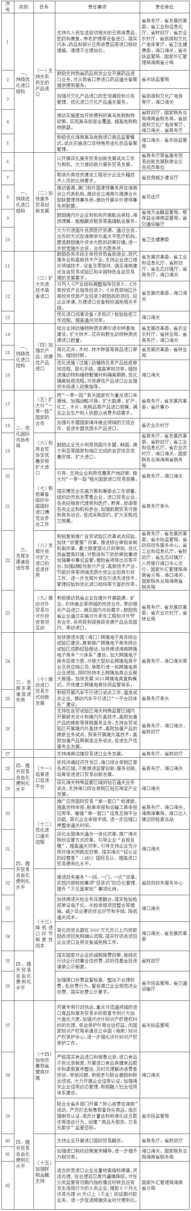 2.《海南省关于扩大进口促进对外贸易发展的若干措施》责任分工