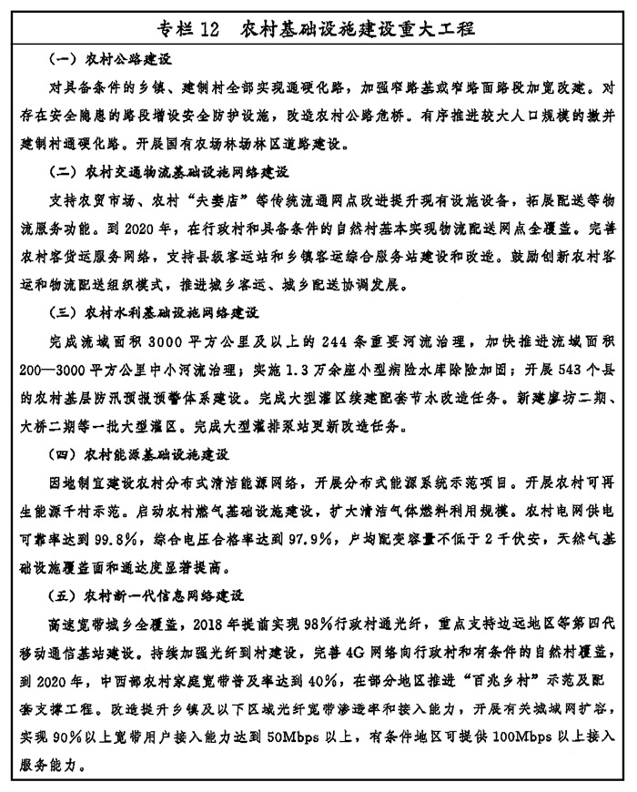 继续把基础设施建设重点放在农村,持续加大投入力度,加快补齐农村基础设施短板,促进城乡基础设施互联互通,推动农村基础设施提挡升级。