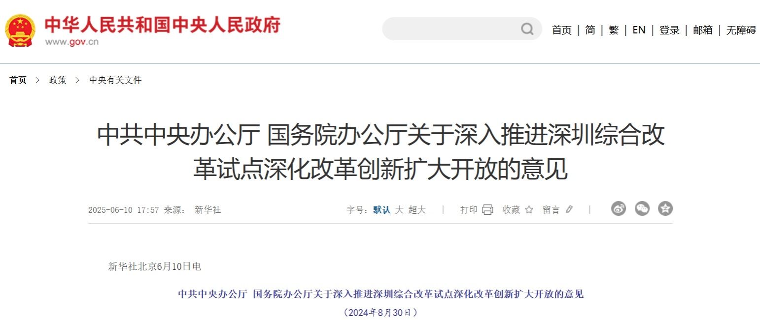 为深入推进深圳综合改革试点、深化改革创新扩大开放,经党中央、国务院同意,现提出如下意见。