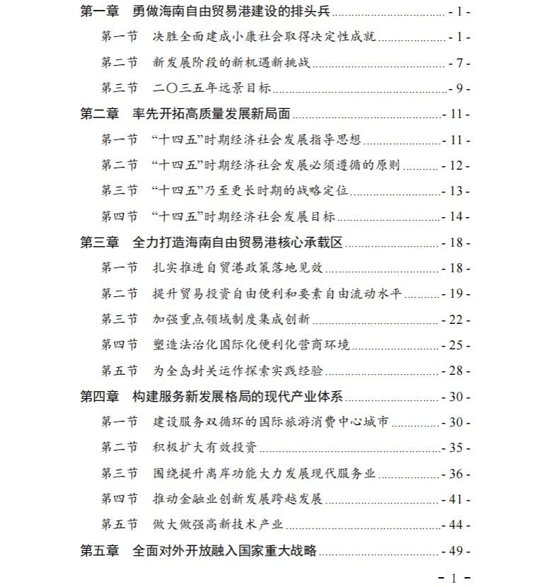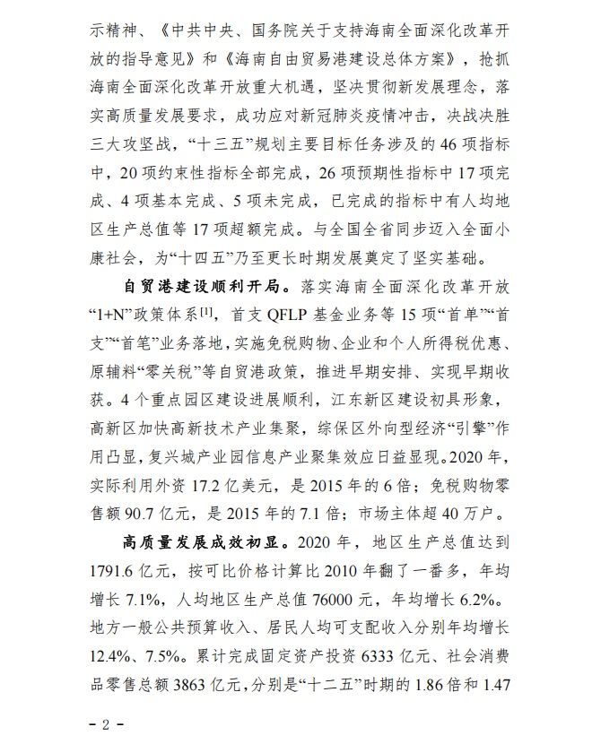 海南省国民经济和社会发展第十四个五年规划和二〇三五年远景目标纲要