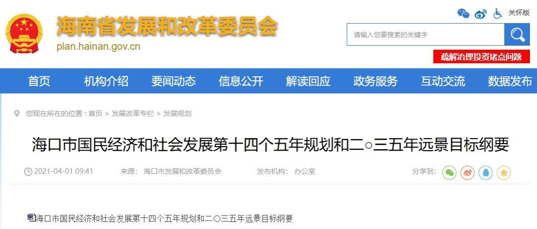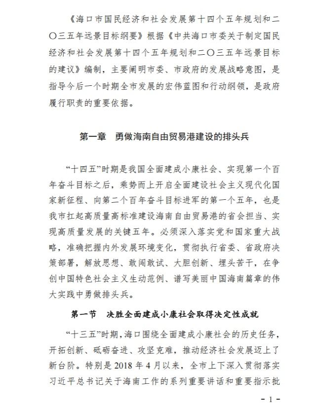 海口市国民经济和社会发展第十四个五年规划和二〇三五年远景目标纲要.pdf