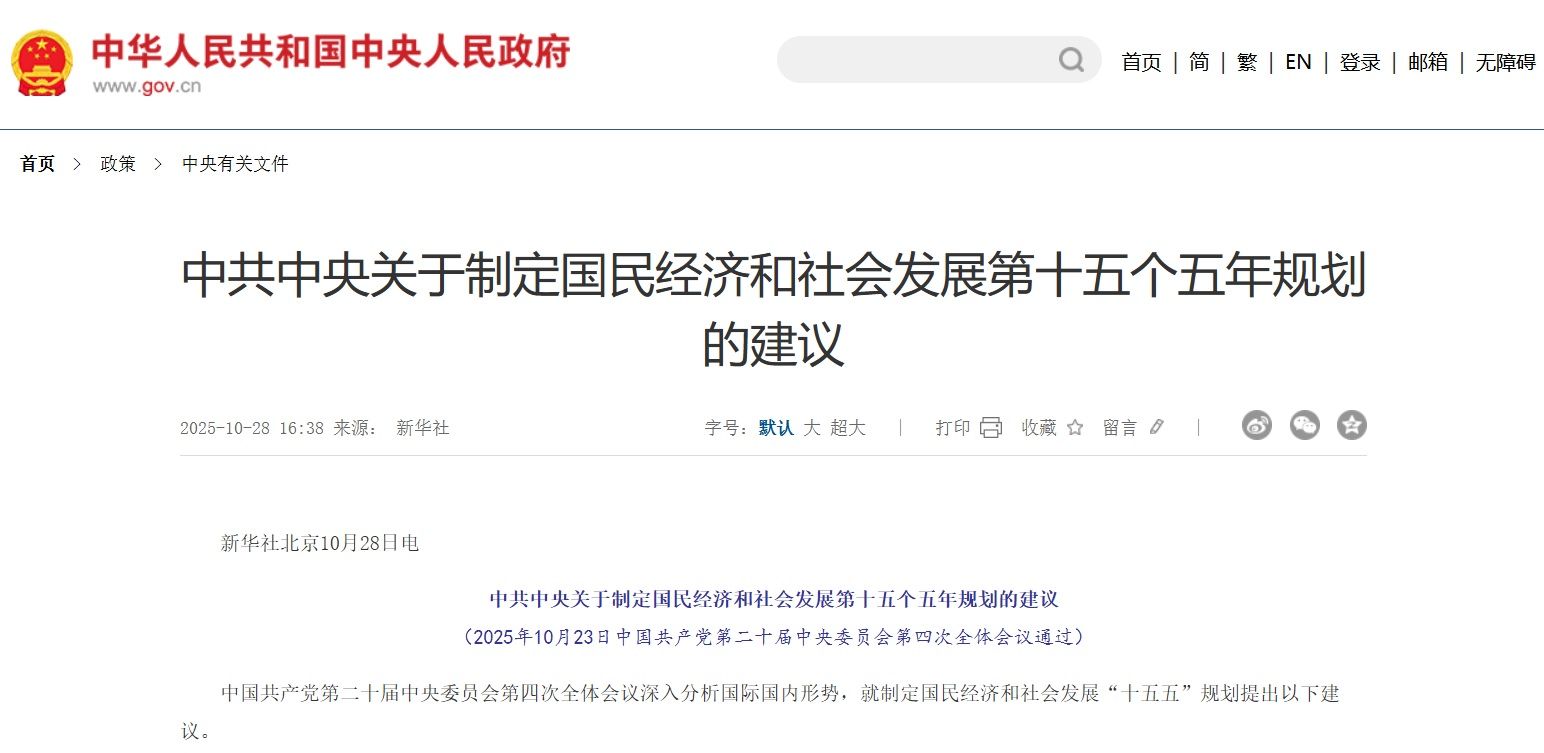 中国共产党第二十届中央委员会第四次全体会议深入分析国际国内形势,就制定国民经济和社会发展“十五五”规划提出以下建议。
