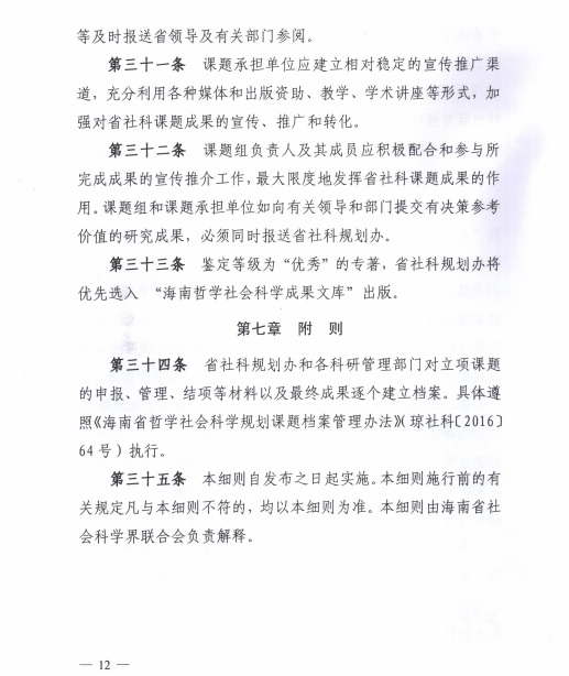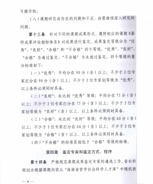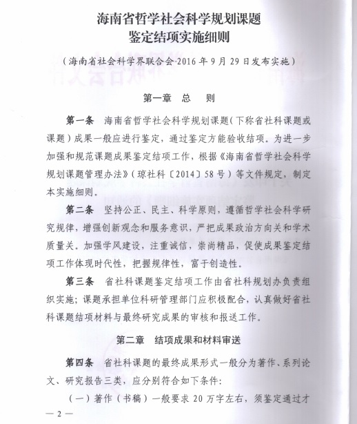 海南省哲学社会科学规划课题鉴定结项实施细则