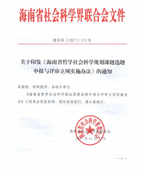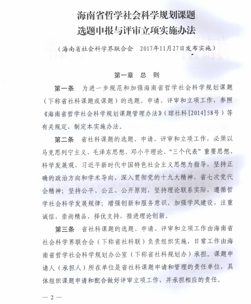 海南省哲学社会科学规划课题选题申报与评审立项实施办法